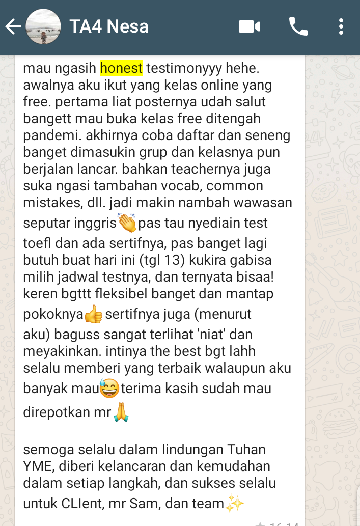 - Free Live TOEFL Mentoring selama 10x Pertemuan